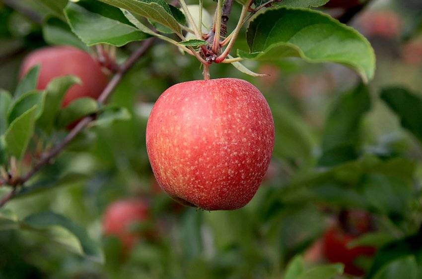 Яблоня не может опыляться самостоятельно, ей обязательно нужны другие сорта для получения урожая. Принято высаживать в промышленных высадках один подходящий штамб на 50-90 квадратных метрах высадок, а при частной культивации достаточно одного на весь участок. Можно просто сажать деревья вперемежку.