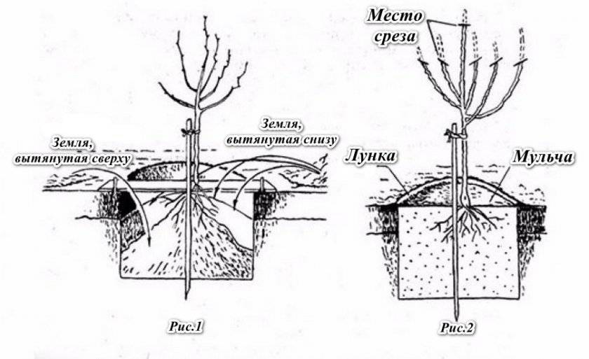 Рис. 1 — Процесс посадки саженца в грунт, рис. 2 — правильно посаженний саженец