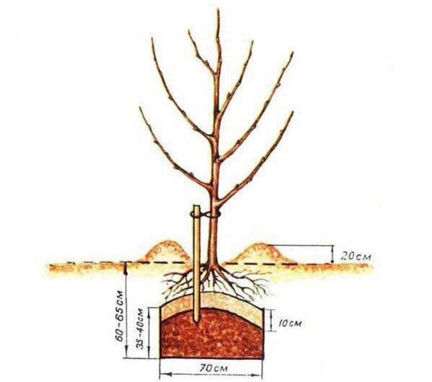 Почки на соседних культурах еще не распустились. Проводят посадку в сухой день. Чтобы не прогадать с датой, с осени готовят яму для дерева со всем ее содержимым.
