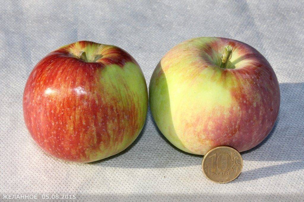Среднерослое дерево сорта Желанное редко болеет паршой и другими грибковыми, да и плодоносит ежегодно без перебоев. Отдача с одного дерева — до 70 кг. Плоды культивара полностью оправдывают своё гордое название — сладкие, пахучие, сахаристые, но с годами дерево вырастает до 7–8 м — урожай собирать не так легко.