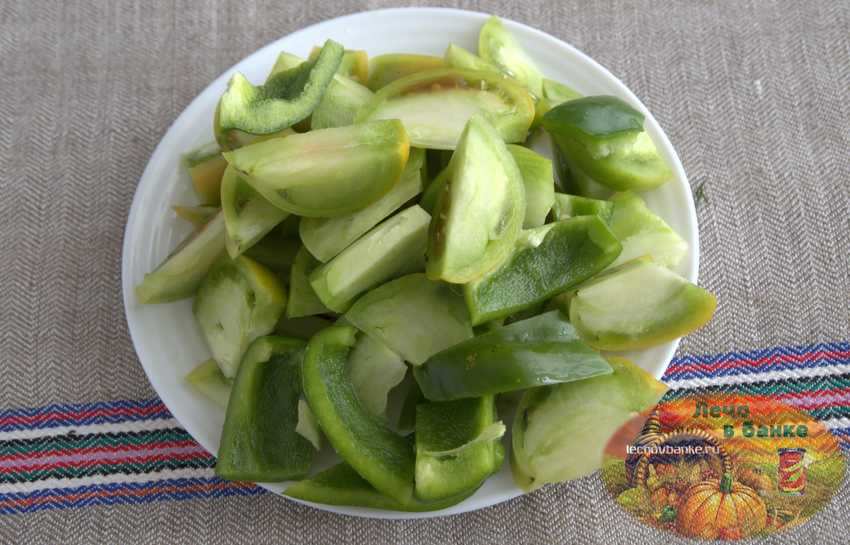 Первым делом стоит измельчить томаты. Так как они зеленые, кожуру снимать с них не нужно, но плодоножки отрежьте. Все блюдо будет проходить через мясорубку, поэтому помидоры лучше нарезать, для удобства. Теперь пропустите через мясорубку их и горький перец.