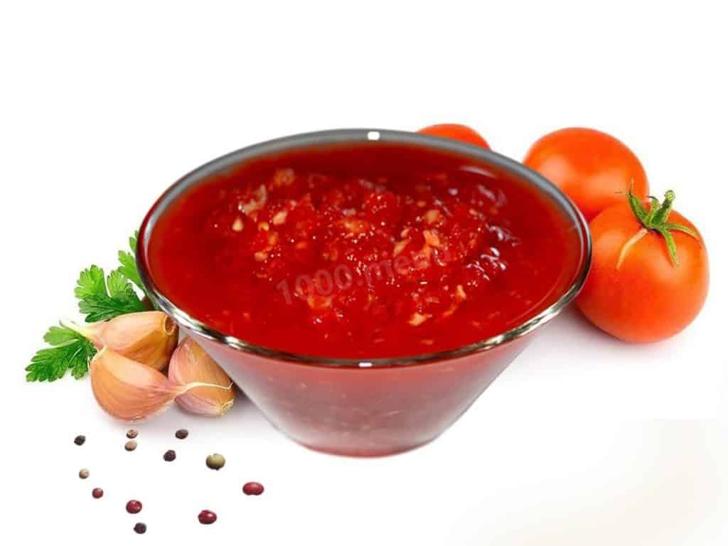 В подлинной аджике не используются ни помидоры, ни уж тем более яблоки. Но в современных условиях соус из томатов – одна из разновидностей этой замечательной закуски, очень популярна, так как она не такая обжигающая и многим приходится по вкусу.