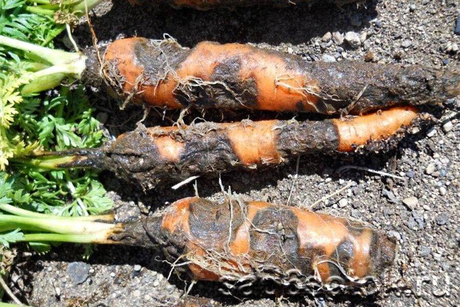 Причем на корнеплодах болезнь может протекать в скрытой форме и обнаружиться во время хранения. Чаще всего с кончиков или основания начинается формирование черных пораженных тканей. В этих местах корнеплоды гниют и покрываются плесенью.
