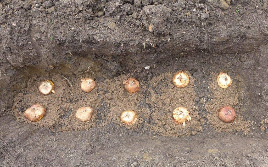 Садоводы придерживаются следующих правил заглубления корнелуковиц: