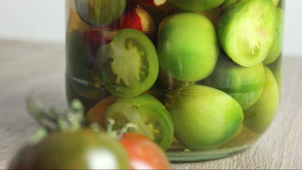 Плоды наполняют зеленью, чесноком, складывают пластами в банки. Маринад доводят до кипения, заливают емкости по плечики, ставят стерилизовать (полулитровые банки – 10 минут). Вытаскивают емкости, закупоривают, переворачивают вверх дном. Утеплять не надо. Овощи получаются вкусными, просто «ум отъешь». Выход – 15 полулитровых или 7 литровых баночек.