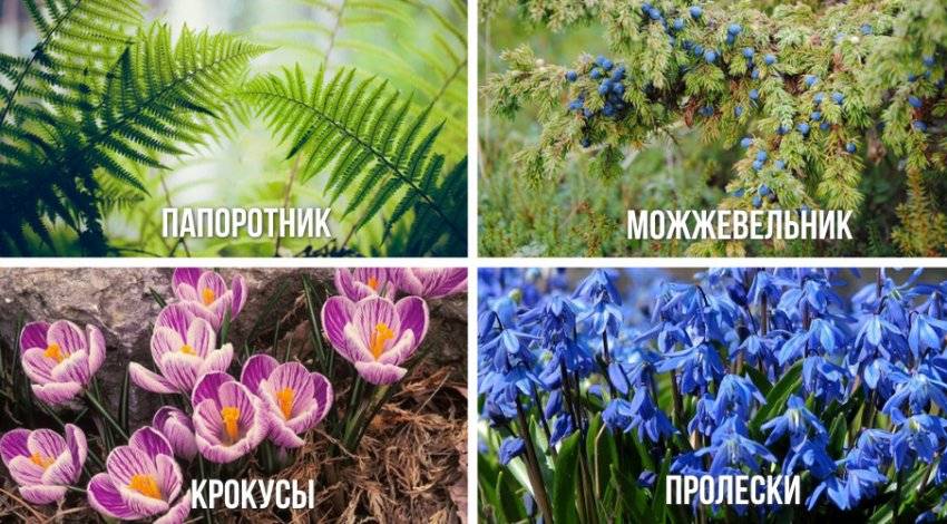 папоротникиможжевельниккрокусы