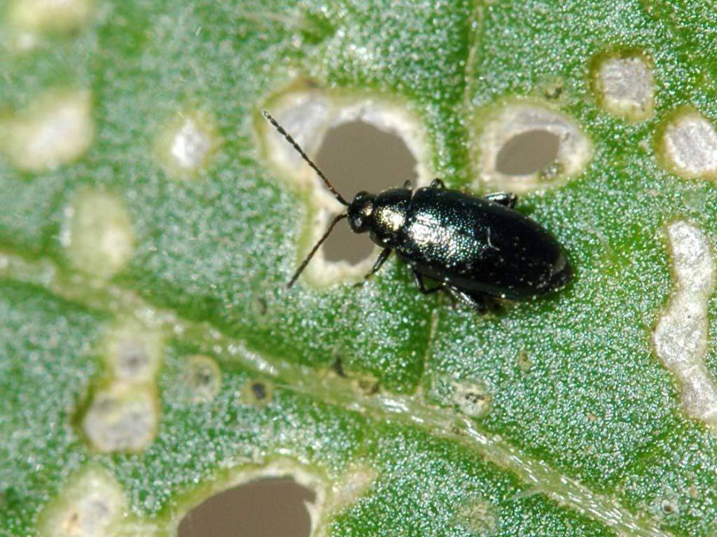 Прыгающих 2-3-миллиметровых жучков существует несколько видов, с окраской от жёлто-бронзового до сине-зелёного и чёрного. Вред, до полного уничтожения, могут нанести молодым побегам цветной капусты из-за их нежности и незащищённости, и количества вредителей. Особо активны в жаркую солнечную погоду.