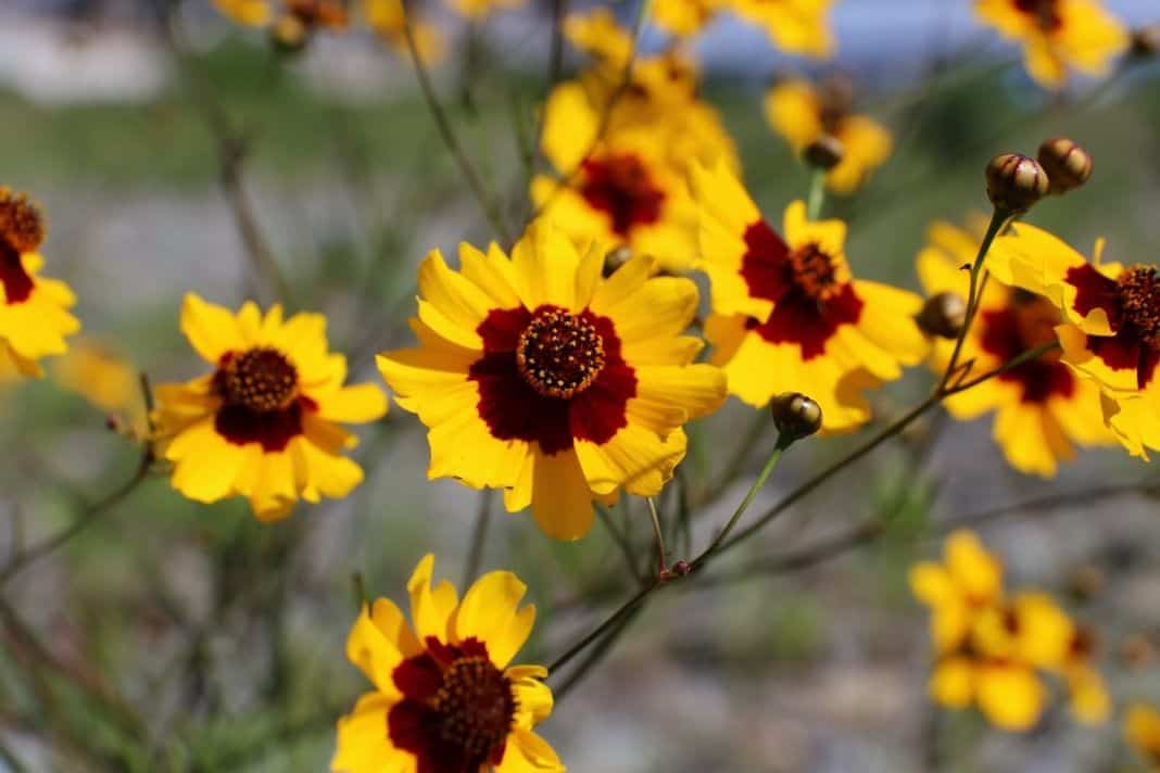 Особенно красиво кореопсис смотрится в качестве бордюрного оформления цветника с растущими на нем колокольчиками, хризантемами, бальзамином и дицендрой. Однолетний цветок эффектно завершит собой композицию, добавив к общему впечатлению ощущение тепла и нежности.