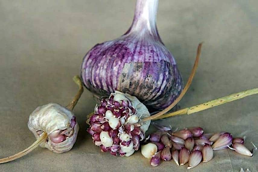 Урожай напрямую зависит от качества посадочного материала, поэтому за 2-3 недели до весенней посадки поместите зубки в холодильник для стратификации, потом рассортируйте их по размерам, отбраковывая больные, искривленные, поврежденные, мягкие, слишком мелкие или имеющие неправильную форму, а также те, что остались без оболочки. После этого отобранные для посева зубки дезинфицируют в течение двух часов в растворе золы: 400 г золы разводят в 2 л воды, кипятят в течение получаса и остужают.