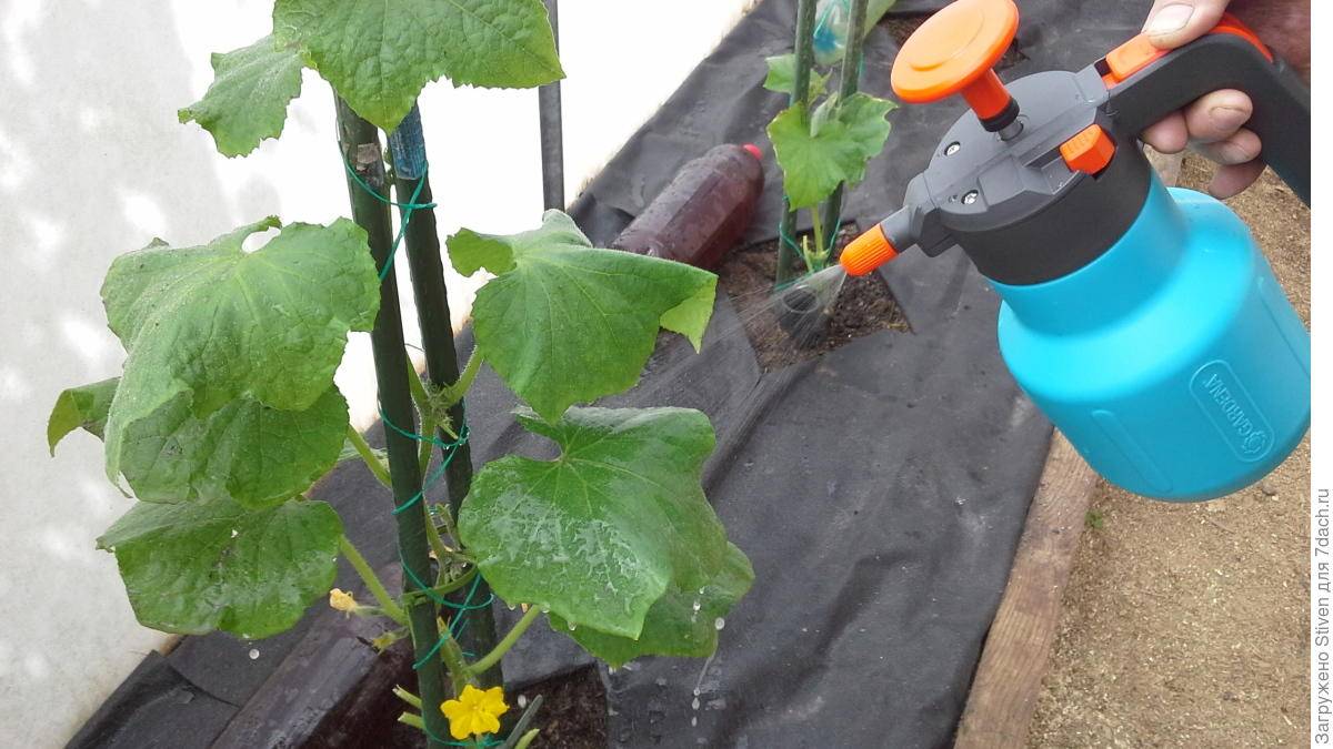 Орошать огуречные плети со всех сторон раз в неделю 2 раза