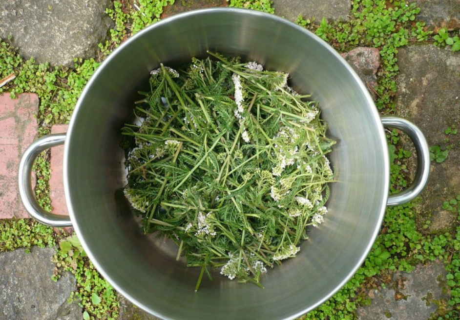 свежую траву (7 кустов) залить кипятком (10 л);