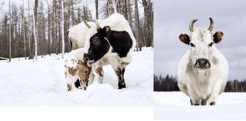 Природа позаботилась о выживаемости якутских коров в условиях суровой зимы. Благодаря жировой прослойке, плотной коже и длинному волнистому шерстяному покрову коровы могут спать прямо на снегу. Им не страшны 50-градусные морозы и порывы ледяного ветра, поэтому строить капитальный теплый коровник для буренок не стоит.