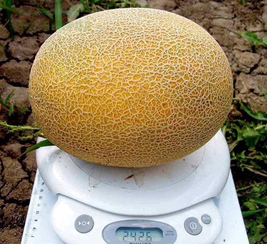 Первые плоды набирают вес до 3 кг, и длину 20-24 см, последующие дыньки на стебле менее крупные, весят от 1,8 до 3 кг, их длина 15-20 см. Но и при таких размерах они имеют вполне привлекательный товарный вид и отменный вкус.