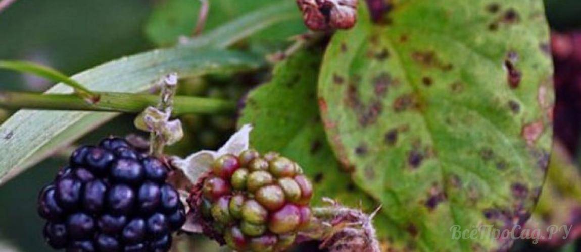 Ежевика плетистая или прямостоячая бесшипная требует не только ухода, но и профилактических мер от вредителей и болезней. Наиболее распространенные болезни кустарника: