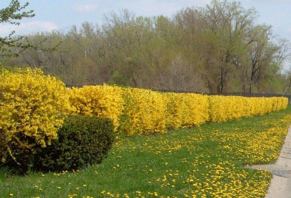 Форзиция промежуточная успешно используется для создания живых изгородей