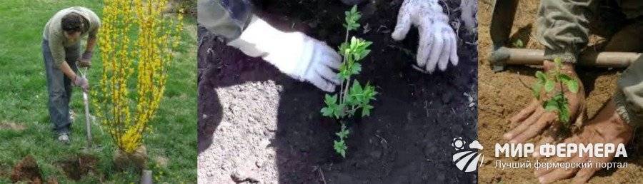 В отличие от других культур, форзицию лучше высаживать ранней осенью, хотя в некоторых случаях подходит и весенняя посадка (если лето в вашем регионе не слишком жаркое). Порядок проведения посадки кустарника приведен на рисунке 3.