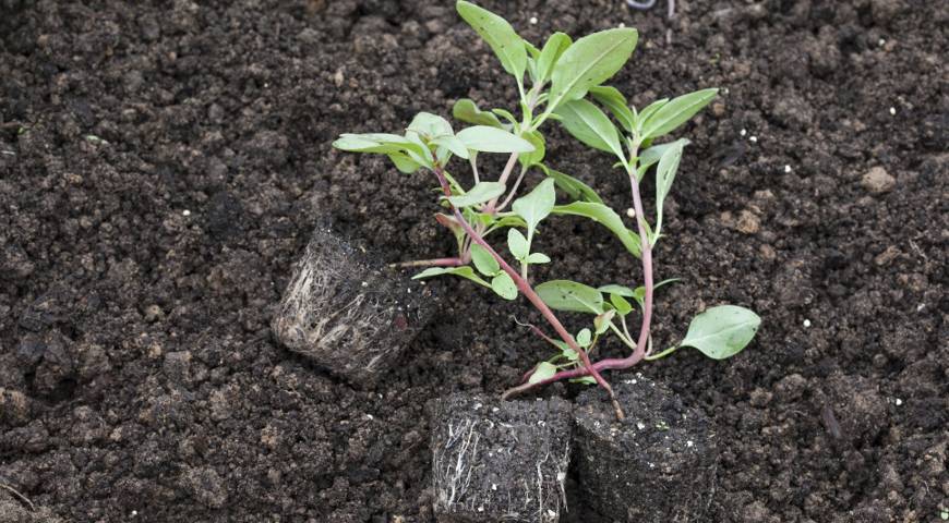 2. Когда минует угроза заморозков, рассаду можно высадить в открытый грунт. Заранее внесите комплексное гранулированное удобрение в почву. Чтобы ком хорошо отставал от стенок, за сутки до высадки полив прекращают.