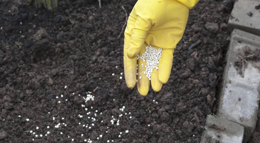 Сыпучие, следует сразу пролить водой, после чего немного прорыхлить верхний слой почвы.