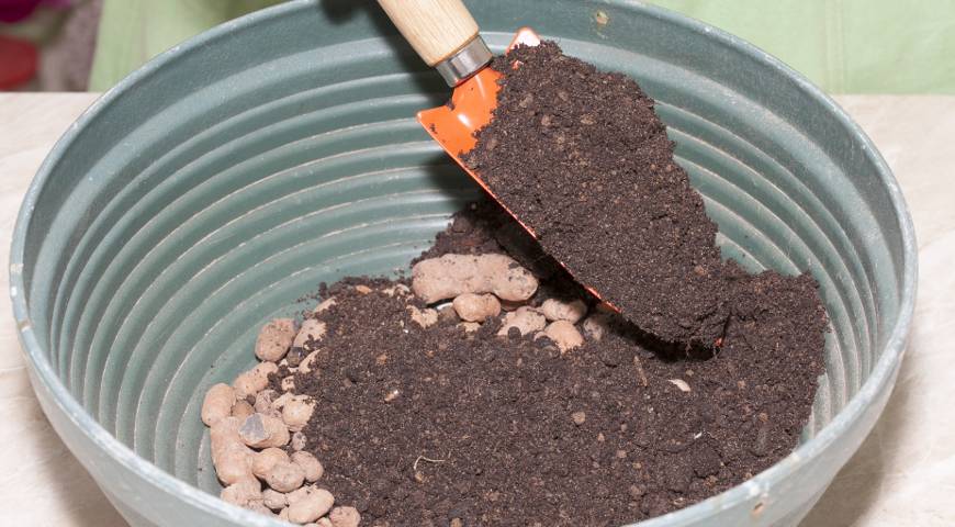 1. На дно контейнера насыпают дренаж, сверху плодородный посадочный грунт. При посадке желательно внести гранулированные удобрения для контейнерных растений или удобрительные палочки. Следующую комплексную подкормку можно провести через полтора месяца после высадки в сад.