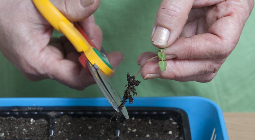 2. Некоторые сеянцы «крепко обнимаются» – переплетаются корешками и листьями. Их нужно бережно разделить с помощью лопатки.