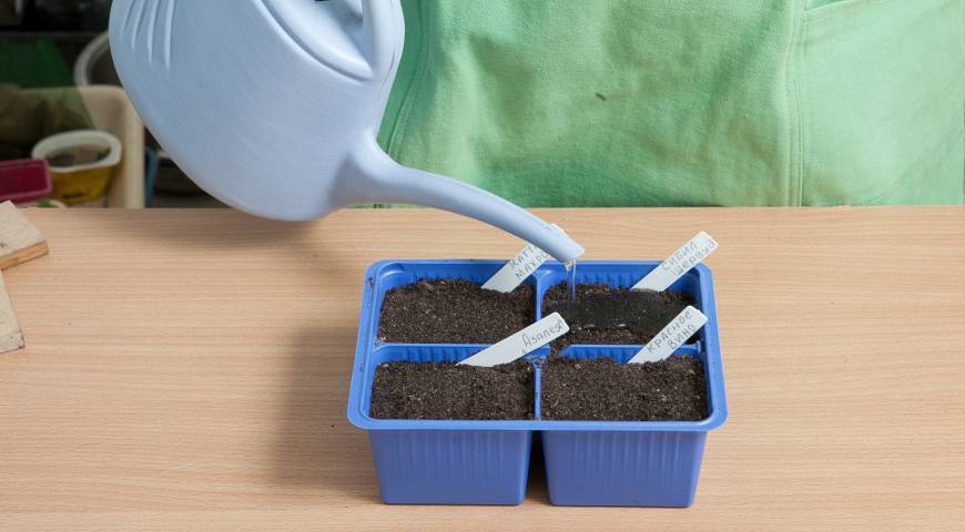 3. Равномерно полейте посевы, чтобы грунт слегка уплотнился и осел. По мере подсыхания верхний слой почвы достаточно слегка увлажнять из пульверизатора, чтобы избежать застоя влаги и заболевания всходов «черной ножкой».