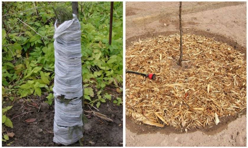 Мульчируют деревья обоих сортов в осеннее время года до наступления холодов и выпадения осадков.