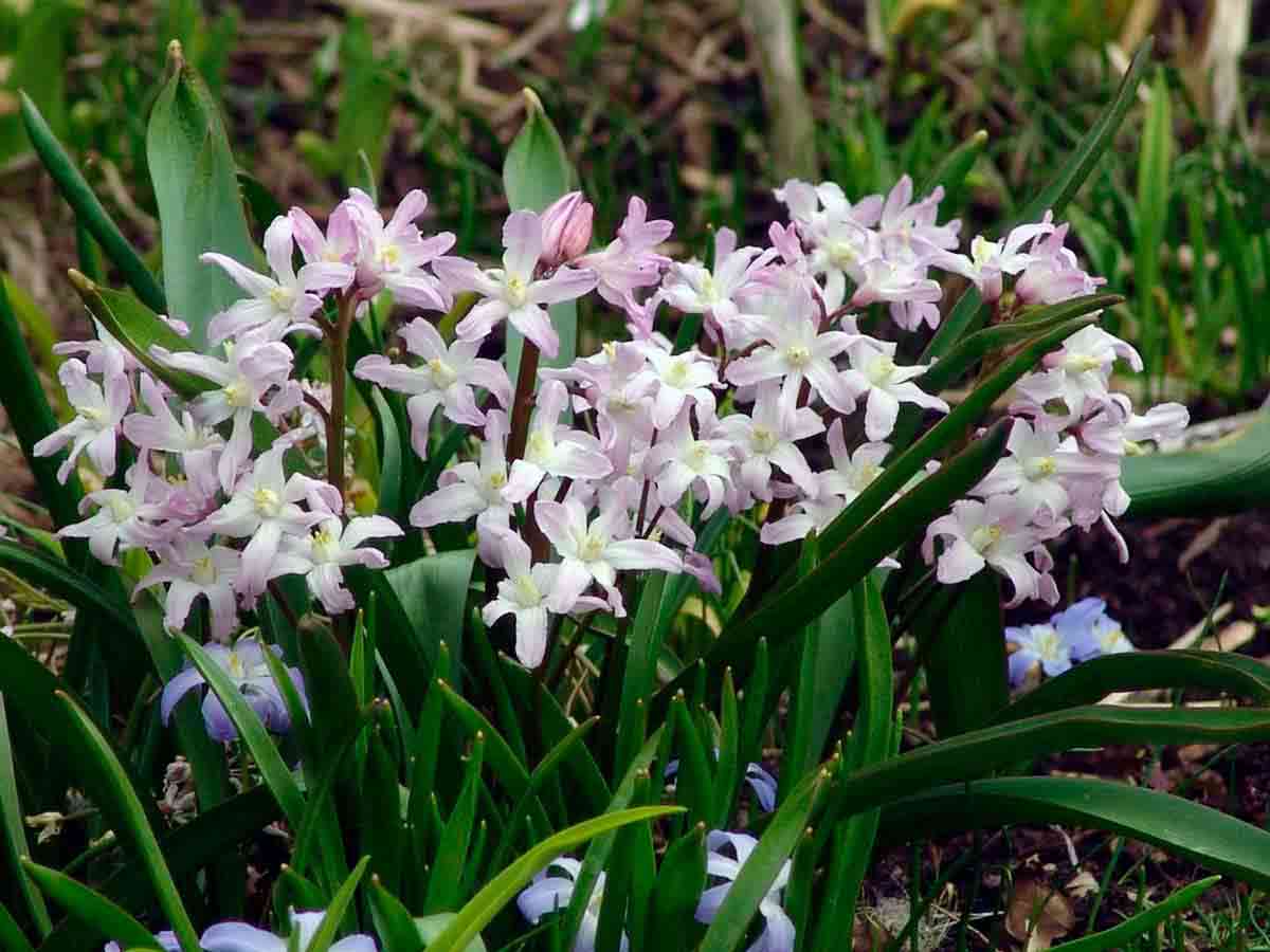 | Белая | Бурая луковица размером до 2 см. Негативно относится к затемненным участкам. | Линейные, темно-зеленые. | Среднерослые, окрас – от белого до сиренево-розового. Бутоны в диаметре до 1 см. Ранняя весна, длительность – около 2 недель. |