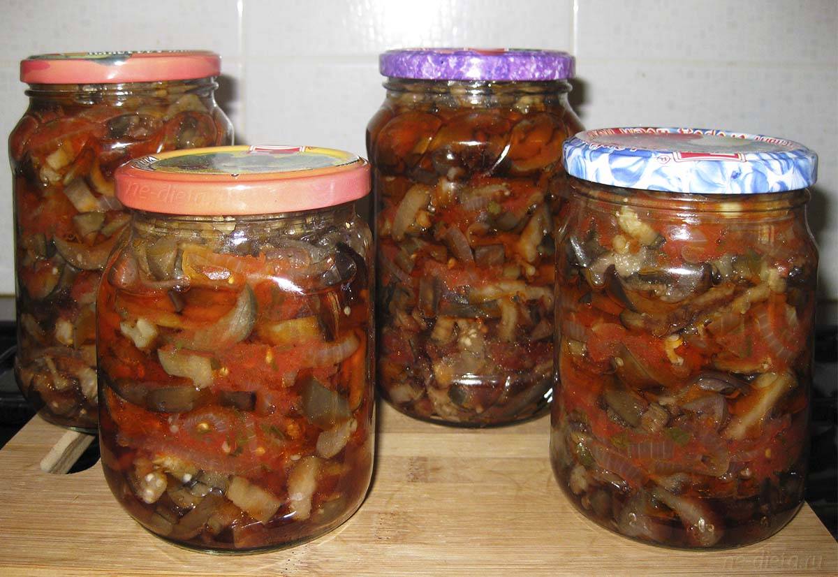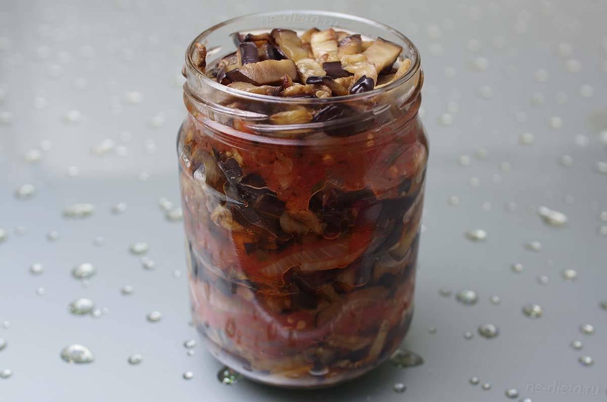 Можно, конечно, начинать наслаждаться этой закуской сразу после ее приготовления. Но лучше запастись терпением и дать ей хотя бы месяц постоять в прохладном месте, чтобы баклажаны как следует пропитались пикантным овощным соусом, стали мягкими, нежными и полностью раскрыли свой изумительный вкус.