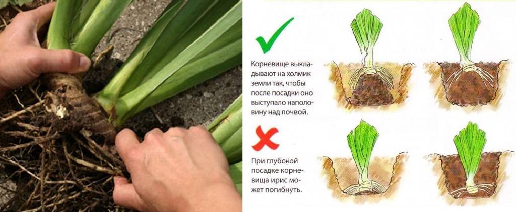 Бородатым ирисам (имеют мягкие щетинистые выросты на нижних лепестках) не нравится заглубление корневища, оно вызывает развитие гнили. «Спинку» корневища можно открыть для солнечных лучей. Безбородые ирисы рекомендуется заглублять на несколько сантиметров, мульчировать торфом либо хвойным опадом для сохранения влаги, а в зной притенять посадки.