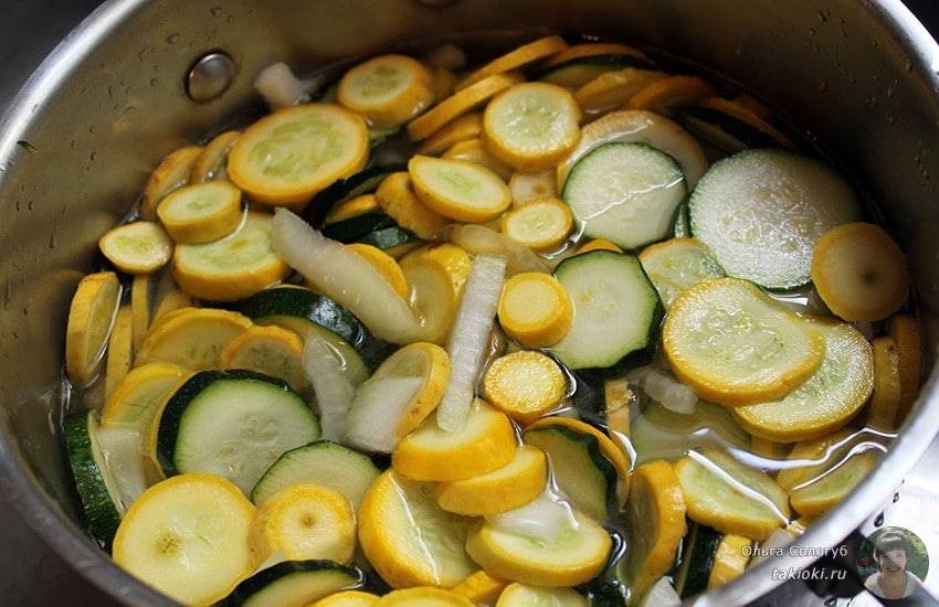 Обратите внимание, кабачки берем разного цвета. Это делается для того, чтобы маринованные кабачки в банках выглядели красиво