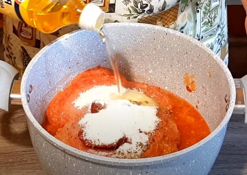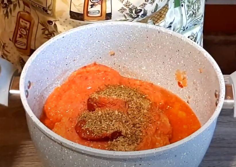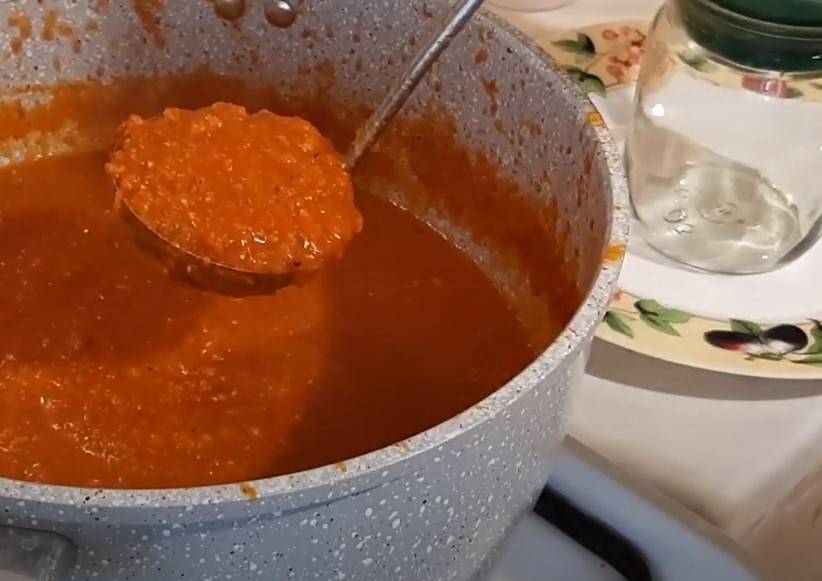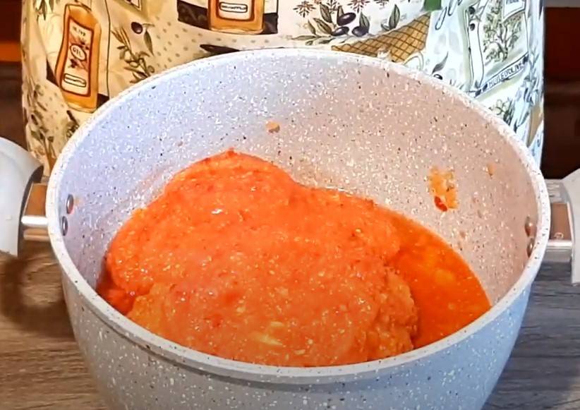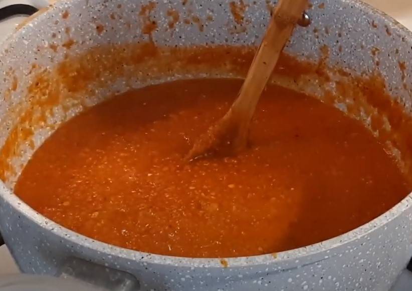- Отправляем кабачок к соусу в кастрюле и продолжаем варить еще 50 минут не забывая помешивать.