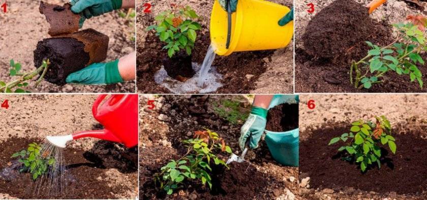 Розу нужно поливать обильно в первые дни и притенить от солнечных лучей. В остальном схема пересадки не отличается от стандартных методов.