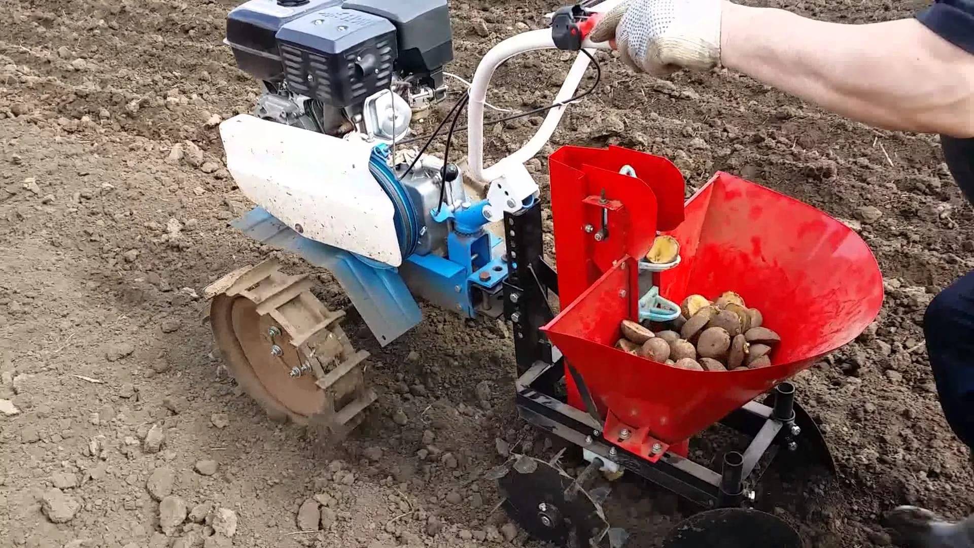 При использовании картофелесажалки важно лишь правильно установить навесное оборудование на мотоблоке и отрегулировать размеры по заглублению. Если всё выполнено как надо, оператору останется засыпать семенной материал в бункер, завести мотоблок и следить за его работой, задавая направление движения. Картофелесажалка, которую будет тянуть мотоблок, самостоятельно сделает борозду, уложит в неё семенной материал и засыплет грунтом