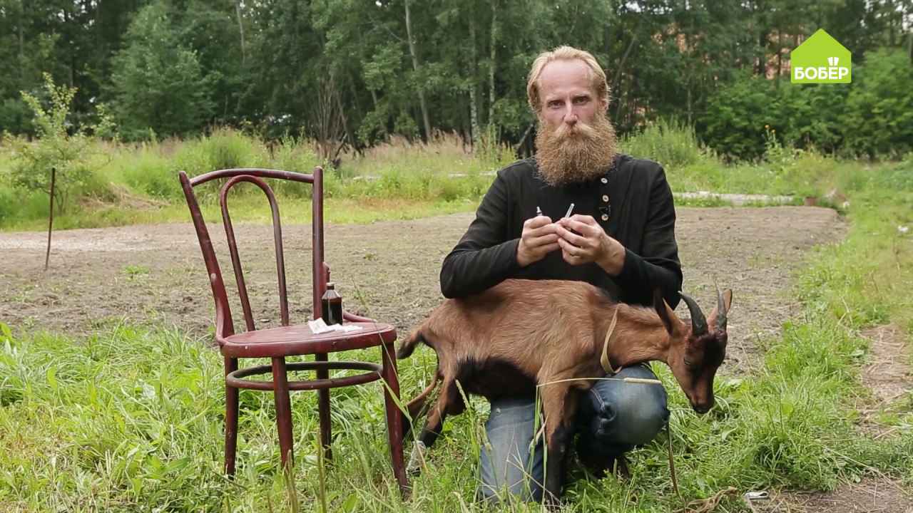 Прижмите козлика к ноге так, чтобы он не двигался.