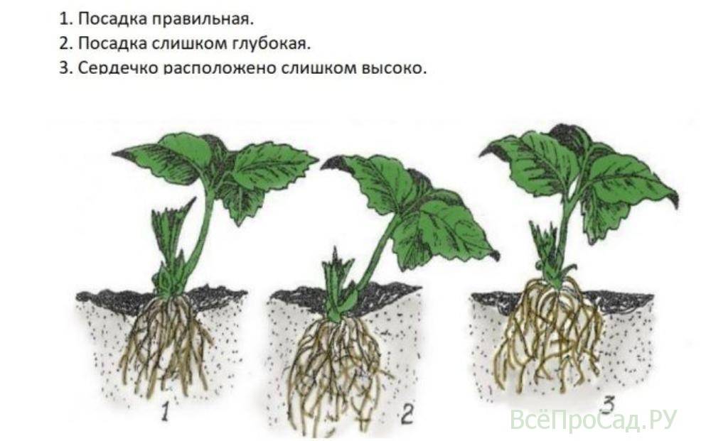 Помещаем саженец в подготовленное углубление. Равномерно распределяем корни. Добавляем землю и уплотняем пальцами, не допуская пустот — грунт должен прилегать к корням. Полностью засыпав лунку, следим чтобы сердечко находилось вровень с землей