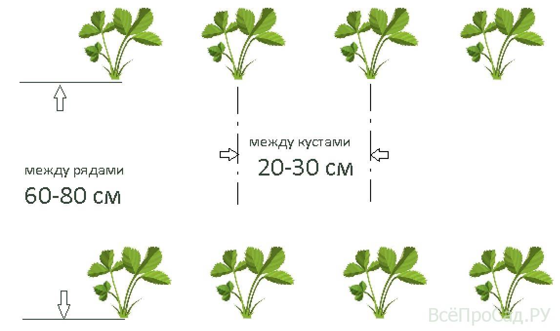 Стоит добавить, что за 2-3 года выращивания, часть усов может укорениться, в результате густота посадки растений увеличится.