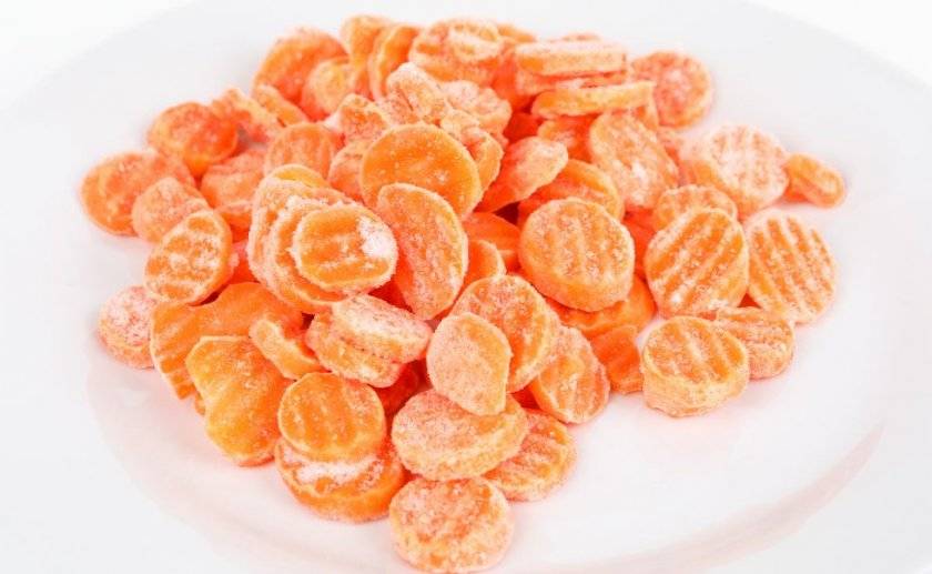 Бланшированные кусочки можно заморозить россыпью, затем переложить морковь в общую емкость. Также допускается использовать в овощных смесях.
