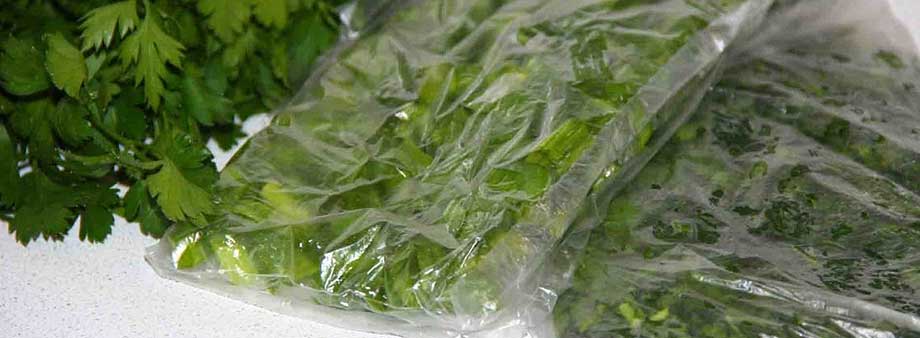 Лучший вариант – придание пакету с рубленой зеленью формы «колбаски». Именно такая форма позволит отломить необходимый по размеру кусочек зелени.