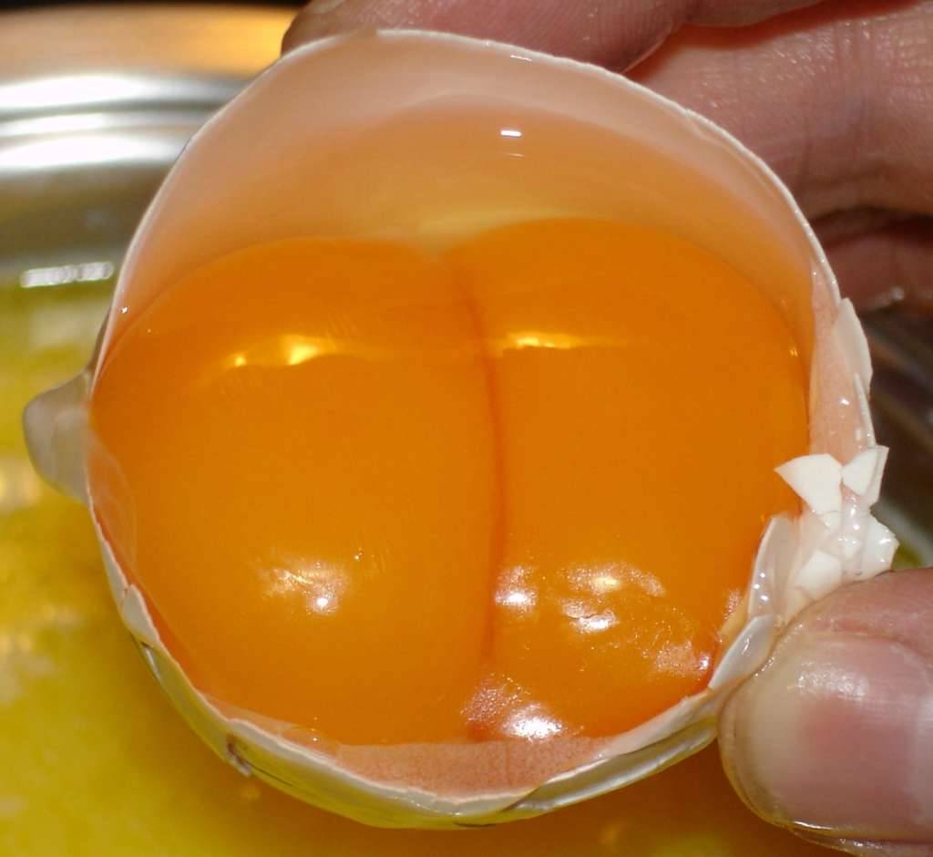 Нормой для куриц является производство яиц с одним желтком. Однако бывают случаи, когда количество желтков увеличивается. И два — это не предел. Совсем изредка их может быть три и более.