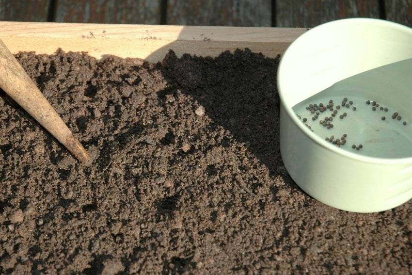 Вне зависимости от того, куда будет произведена посадка семенного материала, почва должна представлять собой смесь дерновой земли с перегноем в равных пропорциях. Чтобы обезопасить растение от чёрной ножки, в субстрат подмешивается немного древесной золы.