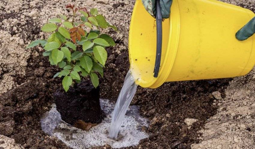 Ругоза в силу своей теплоустойчивости не любит избытка влаги, поэтому полив растению нужно обеспечить редкий, но обильный — не менее 10 л на куст. Наиболее приемлемым вариантом считается полив кустарника всего раз в неделю, при этом субстрат должен быть дренированным и умеренно влажным.