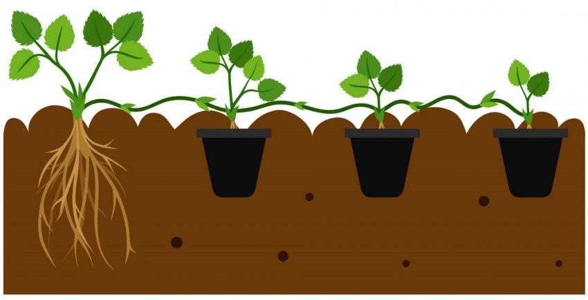 Усики в месте образования розетки прижимают близко к почве. Используют проволоку для надёжности фиксации, но можно просто присыпать грунтом