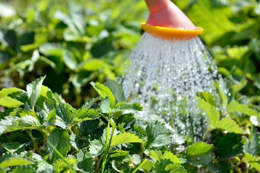 Несмотря на засухоустойчивость, клубника нуждается в своевременном поливе, который осуществляют один раз в неделю, при жаркой погоде. Если погода пасмурная и регулярно выпадают осадки в виде дождей, то дополнительный полив не требуется. В основном используют капельную систему полива.