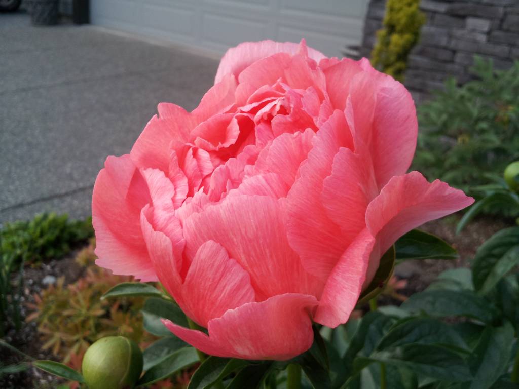 Коралл. Высота может превышать 1 м. Пышные немахровые бутоны образованы нежнейшими коралловыми лепестками с темно-красным основанием.