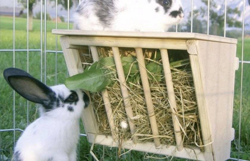 Используются для подачи сена. Правильно сконструированные ясли вмещают 2-дневную норму корма и обеспечивают кроликам легкий доступ к нему вне зависимости от количества, чем существенно облегчают жизнь владельца.