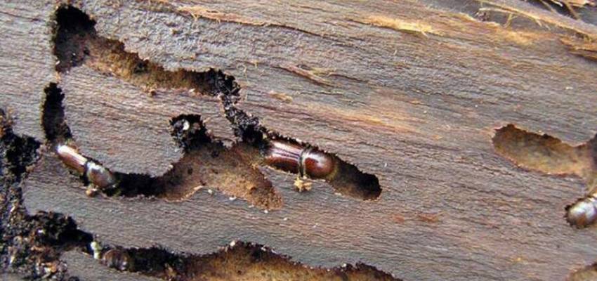 Так называют целое семейство мелких жуков. Описано более 750 видов, около 140 живут европейской части. Их величина от 1 до 8 мм, поэтому обнаружить короеда на дереве достаточно сложно, особенно, когда появляются только единичные особи. В саду они предпочитают яблони и другие плодовые с не очень толстой корой. На оголенной древесине они не живут. Зато спокойно селятся в недавно срубленных стволах и попадают в дом с необработанными должным образом стройматериалами, немедленно начиная свою разрушительную деятельность.