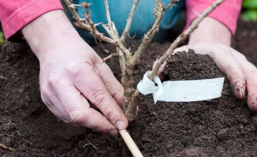 Высаживают крыжовник Белорусский сахарный, придерживаясь следующего алгоритма действий: