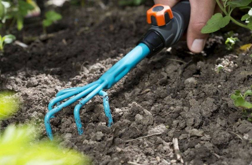 После каждого полива междурядья необходимо рыхлить. Процедура необходима и после дождя. Без регулярного рыхления грунт возьмётся коркой. Так корневая система перестанет получать достаточное количество кислорода. Как следствие, кустарник начнёт увядать.