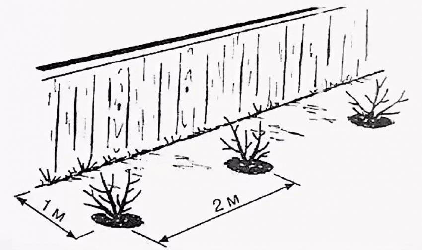 - расстояние от других кустарников, деревьев и забора не менее 1,5–2 м.