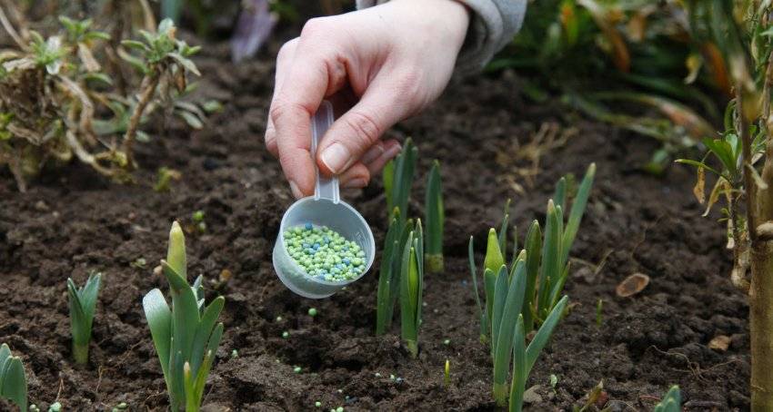 Нарциссы подкармливают минеральными удобрениями на протяжении вегетационного периода не менее 3-х раз: